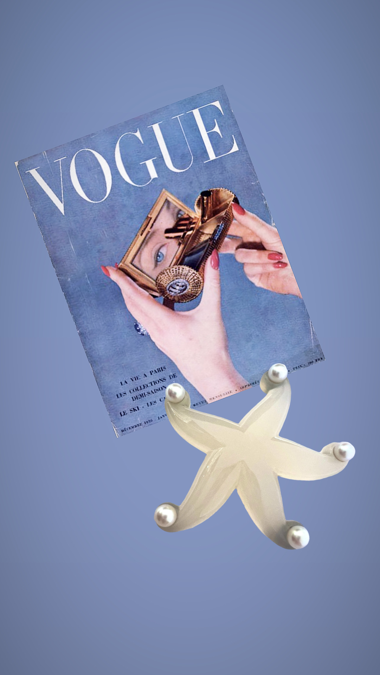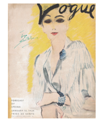 Couverture du Vogue américain, janvier 1934, présentant des bijoux en calcédoine bleue de Suzanne Belperron.